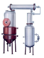 【ZN-C型新型濃縮罐】 1.ZN-C型是加長筒體分離段; 2.為克服濃縮罐頂二次蒸汽在未進入冷凝器前被冷凝而返回罐內(nèi)的缺點。本設備將冷凝器改為斜臥式; 3.為提高設備的生產(chǎn)能力,本設備將濃縮罐夾套的加熱面積,冷凝、冷卻器的面積均有不同程度加大; 4.為防止?jié)饪s罐出液管的死角,本產(chǎn)品中采用不銹鋼球形考克; 5.在濃縮罐下部設置了快開式手孔,以便清理罐內(nèi)殘液,殘渣; 6.ZN-C型是將加熱夾套分兩段或三段,當液面低時關必閉上段加熱防止干壁。其底改為錐底便于排凈濃縮液。